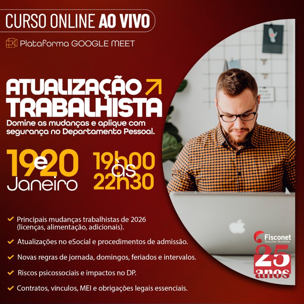 O Curso Atualização Trabalhista 2026 prepara profissionais do DP, RH e Contábil para atuar com segurança diante das mudanças que entram em vigor em 2026.