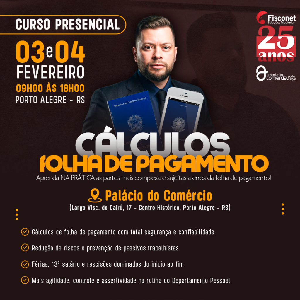 O Curso Presencial de Cálculos da Folha de Pagamento foi desenvolvido para profissionais que precisam executar, revisar e validar cálculos trabalhistas com precisão, reduzindo riscos de passivos, autuações e reclamatórias.