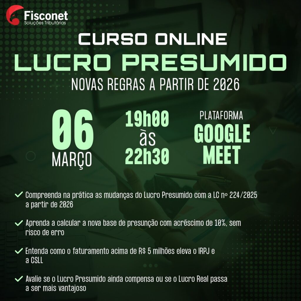A partir de 1º de janeiro de 2026, o regime do Lucro Presumido passa por alterações relevantes que impactam diretamente a apuração do IRPJ e da CSLL. As mudanças introduzidas pela Lei Complementar nº 224/2025, regulamentadas pela Instrução Normativa RFB nº 2.305/2025, reforçam o enquadramento do Lucro Presumido como benefício fiscal e aumentam a carga tributária para empresas com maior faturamento.