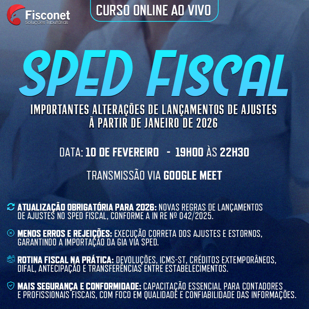 Este curso online e ao vivo foi desenvolvido para preparar contadores e profissionais da área a executarem corretamente os novos procedimentos de ajustes no SPED Fiscal. O objetivo é garantir que você realize a importação da GIA via SPED com segurança, eliminando erros e rejeições no sistema.